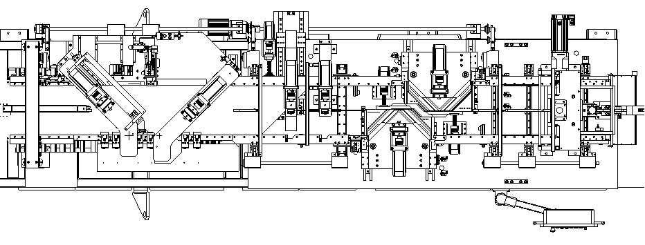 本機(jī)采用兩剪四沖(1座45°直刀+1座-45°直刀+2座V沖+2座沖孔),沖剪方式如下:一個(gè)沖剪周期完成變壓器鐵芯一層硅鋼片的加工,經(jīng)過理料平臺(tái)進(jìn)行分別碼垛,最終形成一個(gè)變壓器的5個(gè)鐵芯柱子。