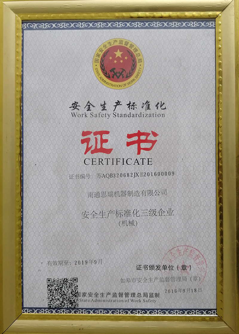 安全生產(chǎn)標(biāo)準(zhǔn)化證書